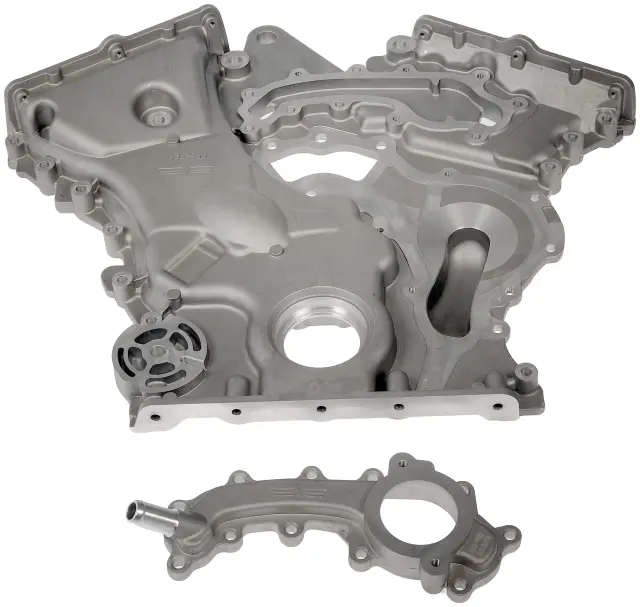 - Description: The original equipment timing cover leaks when the plastic water outlet fatigues and cracks. This Dorman OE FIX timing cover is an upgraded design that features an aluminum water outlet for greater strength and durability.