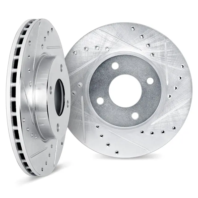 - Description: DFC Premium Performance Brake Rotors are engineered for performance at a great value. Drilled and slotted rotors will grab more bite to the brake pads giving you shorter stopping distance especially in wet weather. The drilled holes will reduce the heat that builds on the rotor. The slots on the rotor remove brake and road debris and prevent pad glazing.Formulated with the G3000/G11H18 cast iron specification, DFC GEOSPEC Coated Brake Rotors are engineered to match OEM specifications for durability, reliability, and stability. Each rotor casting is sent to our state of the art machining facilities, where it is processed to the tightest tolerances available in the market today. Then, the rotor is prepared with a non-directional finish to promote a faster and more even brake pad bed-in, along with quieter and smoother stops. Finally, all vented rotors are 100% inspected for balance and are corrected if necessary with our state of the art electronic mill-balance process. After all of the machining processes are completed, each rotor passes a 100% inspection station that measures all critical attributes to ensure that each rotor meets OE specifications. This further guarantees that each and every rotor delivered to you is trouble free. DFC provides a 12 month - 12,000 mile limited warranty against defects in material and workmanship.