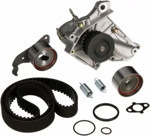 - Description: Gates Timing Belt Component Kits with Water Pump o?er customers the best and most complete repair solution by including the same premium components as our TCK’s - timing belts, pulleys and tensioners - as well as a water pump. Timing belt driven water pumps should always be replaced at the same time as the timing belt. Don't take chances. With Gates TCKWP’s, you can avoid returns by replacing all critical system components at the same time.