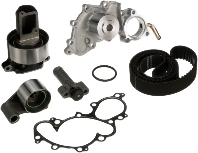 - Description: Gates Timing Belt Component Kits with Water Pump o?er customers the best and most complete repair solution by including the same premium components as our TCK’s - timing belts, pulleys and tensioners - as well as a water pump. Timing belt driven water pumps should always be replaced at the same time as the timing belt. Don't take chances. With Gates TCKWP’s, you can avoid returns by replacing all critical system components at the same time.