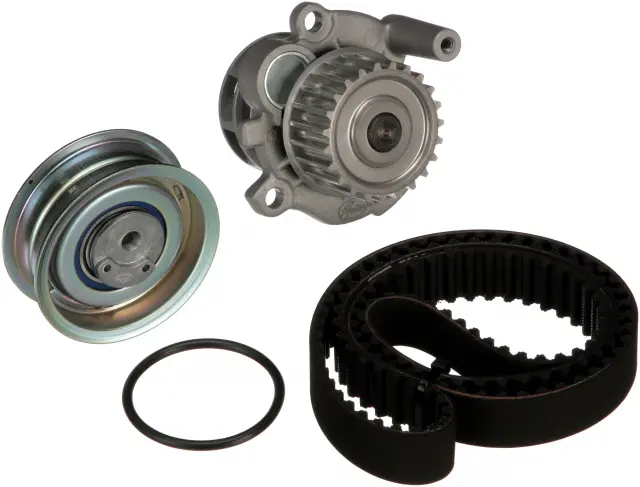 - Description: Gates Timing Belt Component Kits with Water Pump o?er customers the best and most complete repair solution by including the same premium components as our TCK’s - timing belts, pulleys and tensioners - as well as a water pump. Timing belt driven water pumps should always be replaced at the same time as the timing belt. Don't take chances. With Gates TCKWP’s, you can avoid returns by replacing all critical system components at the same time.