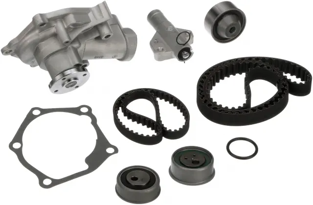 - Description: Gates Timing Belt Component Kits with Water Pump o?er customers the best and most complete repair solution by including the same premium components as our TCK’s - timing belts, pulleys and tensioners - as well as a water pump. Timing belt driven water pumps should always be replaced at the same time as the timing belt. Don't take chances. With Gates TCKWP’s, you can avoid returns by replacing all critical system components at the same time.