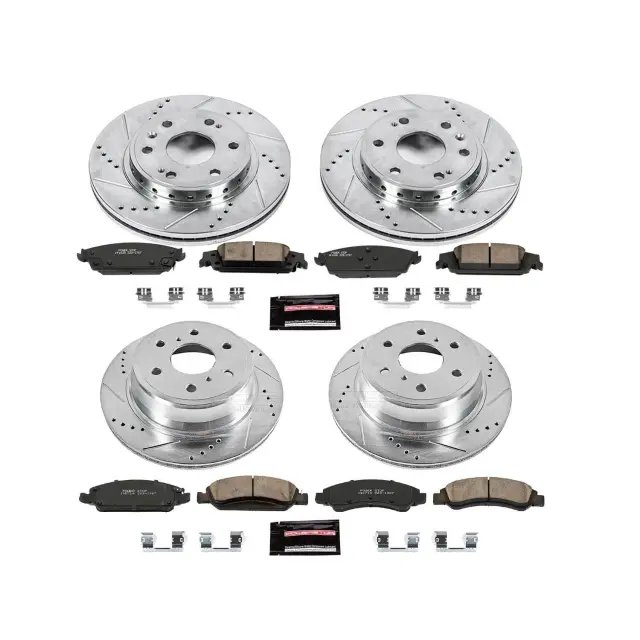 - Description: PowerStop is on a mission to deliver an easy way for any driver to upgrade their brakes - no matter where or how they use their vehicle. Forget standard, off-the-shelf parts. Our Z23 Evolution Sport Brake Upgrade Kit comes with everything you need, from pads, rotors and premium stainless-steel hardware for an easy, bolt-on upgrade for your daily-driver. Along with increased braking power, the Carbon-Fiber Ceramic brake pads feature a low-dust formula to keep those wheels looking great while you say goodbye to nasty brake dust. These pads combine with Drilled & Slotted rotors to ensure a cool, smooth ride that protects against rust and corrosion. Give your daily-driver the easy and affordable performance upgrade it deserves with the Z23 Evolution Sport Brake Upgrade Kit.